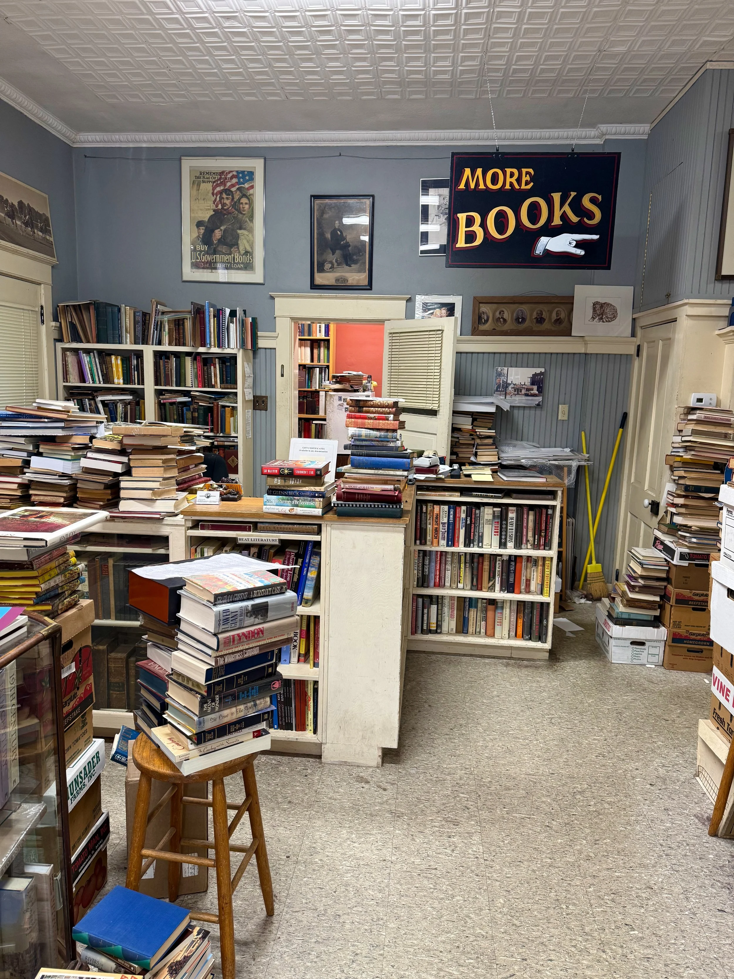 I absolutely adore spending my time browsing bookstores. Whenever we travel, we always make sure to look for bookstores. Fortunately, we have access to quite a few bookstores in our area. Recently, my husband and I had a delicious lunch at Joe Bologna’s, an Italian restaurant and pizzeria in downtown Lexington, Kentucky. It’s a charming establishment that has been in business since 1973. Joe, the owner, retired in 2025 and sold the restaurant to new owners who are committed to preserving its tradition. The restaurant is located inside a historic former church, featuring high ceilings, stained glass, and a cozy, historic ambiance. Since we don’t often venture into downtown Lexington, we decided to explore Black Swan Books, a renowned used and rare bookstore, after lunch.