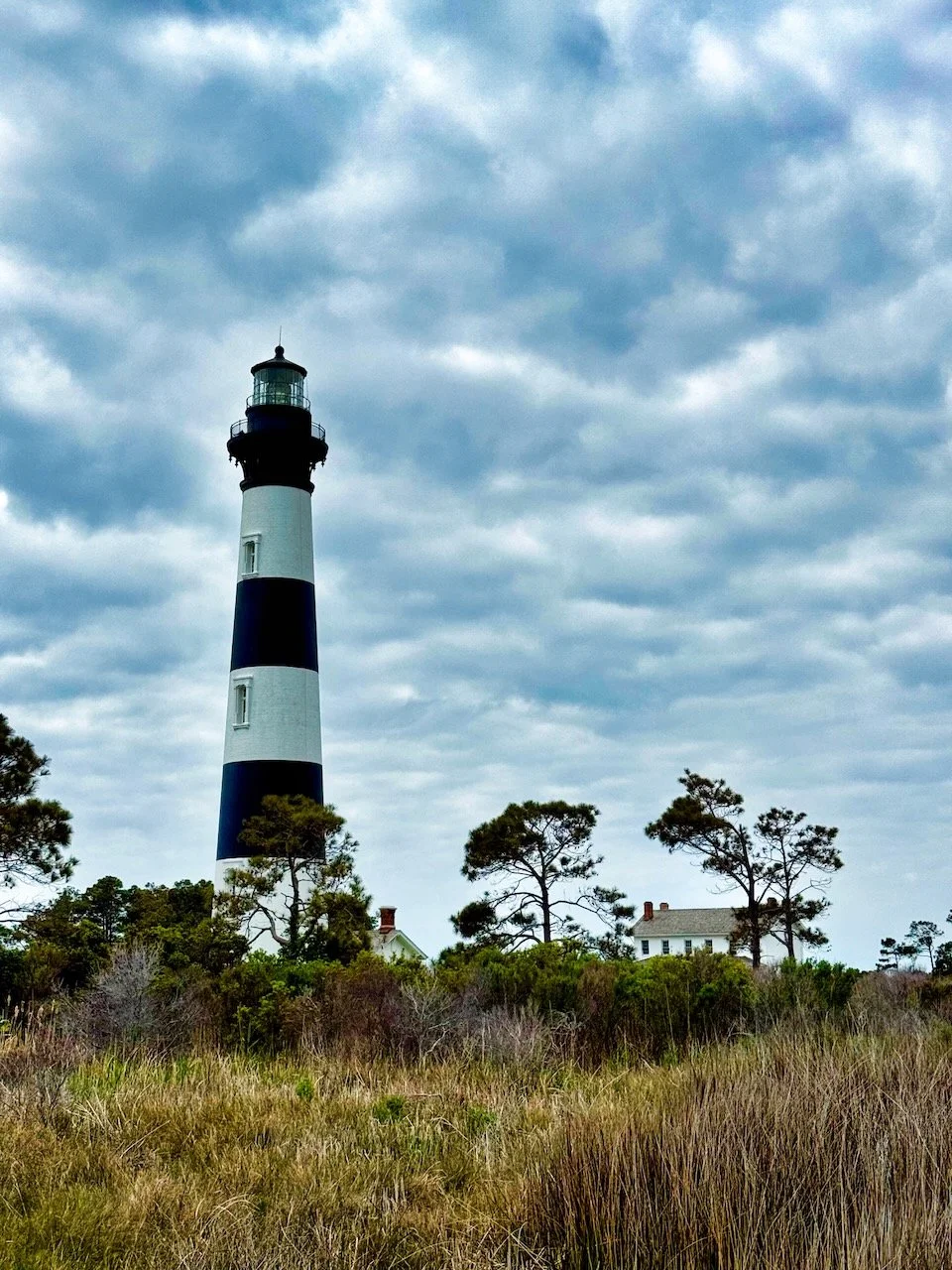 My favorite lighthouse on the Outer Banks is Bodie Island Light Station. It’s a historic 156-foot-tall beacon built in 1872, known for its distinctive black-and-white horizontal stripes. It stands as a key landmark within the Cape Hatteras National Seashore, guiding mariners along the treacherous coast. Visitors can climb its 214 steps for panoramic views of the Atlantic Ocean and surrounding marshes, while its keeper’s quarters now house a museum.