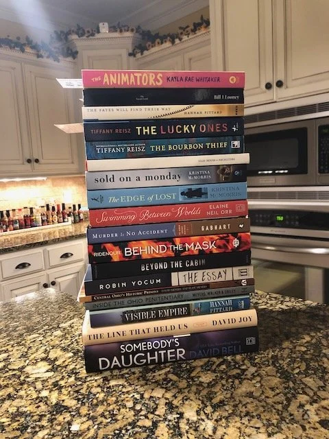 I met Tiffany Reisz at last year’s book fair and loved her book The Night Mark. This year I purchased The Bourbon Thief and The Lucky Ones. Tiffany is a local Lexington author who is married to author Andrew Shaffer. Ann Gabhart lives in a small town outside Lexington and writes cozy mysteries and Christian fiction novels. I stick with her cozy mystery series titled Hidden Springs Mystery. This year I bought Murder is no Accident. While browsing the main author floor, I met Dana Ridenour, a retired FBI agent. She was really interesting; I enjoyed talking with her about how she went from FBI agent to writer. I purchased the first two books in her series Behind the Mask and Beyond the Cabin. While talking with Dana, the author seated next to her, Bill Looney, noticed my husband’s Edgar Allan Poe tattoos. Bill easily talked us into buying his book, The Vacant Tomb, as it’s a murder mystery with Mr. Poe in the plot. Robin Yocum is an author from Ohio that I haven’t read either. I was upfront with that fact and asked him to recommend a book of his; he suggested I read The Essay. While browsing the author tables, I encountered David Meyers and Elise Meyers, father and daughter writers. They are from Ohio and write about prisons. I’m from Ohio and have always been intrigued about prisons, so adding two of their books, Central Ohio’s Historic Prisons and Inside the Ohio Penitentiary, was an easy sell. David Bell is a Kentucky author and English professor at Western Kentucky University. I enjoy his thriller novels so I picked up his latest book, Somebody’s Daughter.