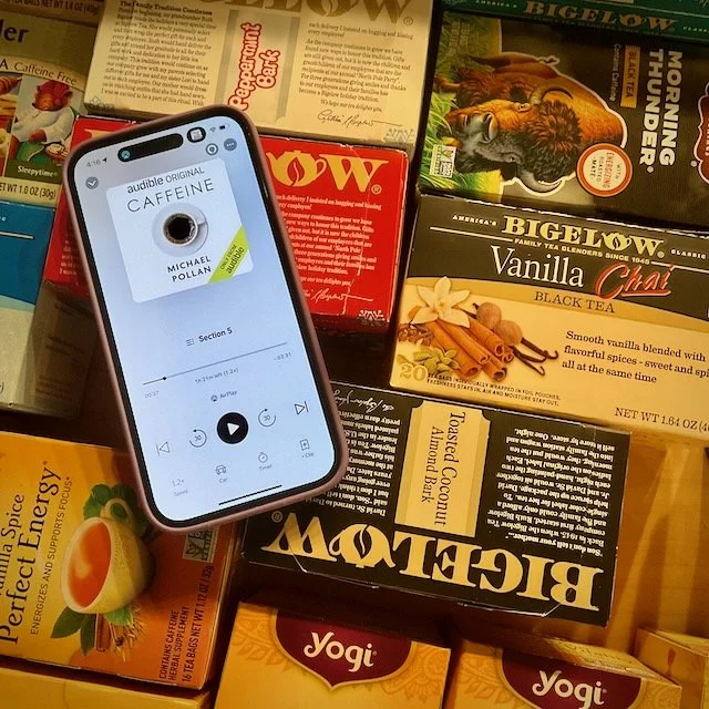 As I previously mentioned, I love tea. I have explored tea bags, loose leaf tea, a multitude of flavors/seasons, and various caffeine levels. In the picture above is only one part of my tea collection. I enjoy the process of making tea. I have developed rituals and am thoughtful of the time available to steep different types of teas. I have no desire to unhinge my relationship with caffeine, and thankfully, Pollan understands.